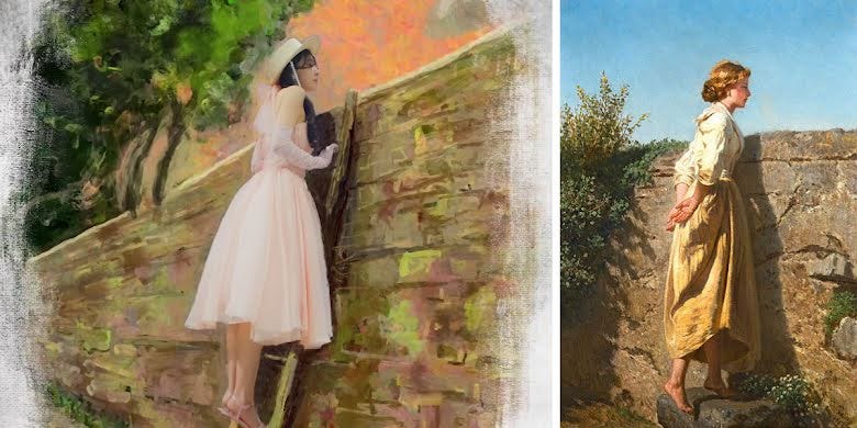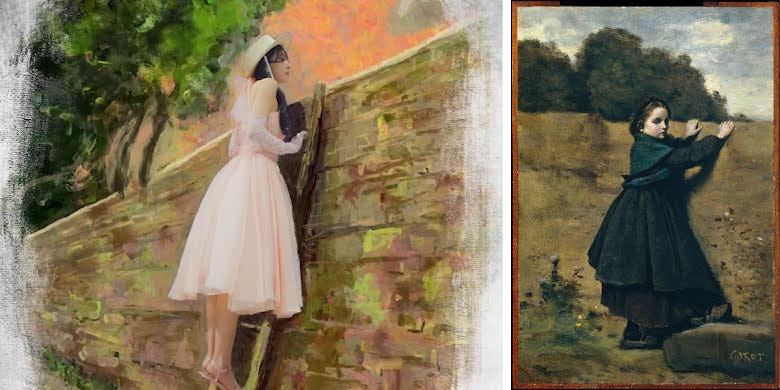 However, several paintings could be represented in the scene of Seulgi looking over the wall. Some other ones are: